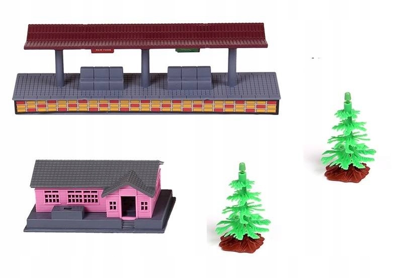 Zestaw wyposażony jest we wspaniałe akcesoria, które jeszcze bardziej uatrakcyjnią zabawę - dworzec, na którym pociąg może zrobić postój, peron, na którym będą czekać pasażerowie oraz dwa zielona drzewka nadające klimat podróży.