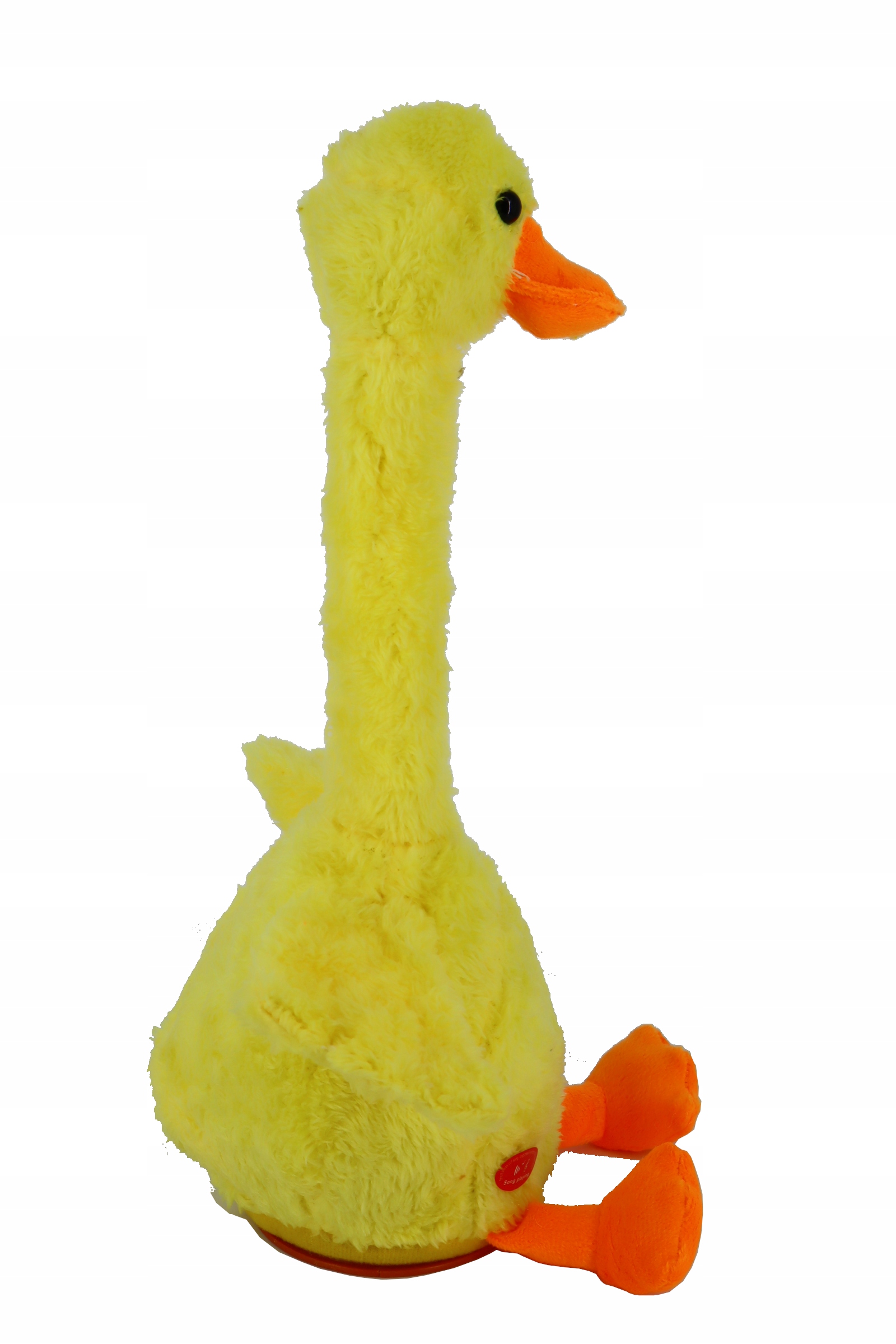 KACZKA która potrafi śpiewać, tańczyć a także "papugować" usłyszane słowa to właśnie ta sympatyczna maskotka. Zabawka ma wgranych około 120 różnych utworów, tańczy w bardzo śmieszny sposób a podczas tańca jej tułów świeci na różne dyskotekowe kolory. Ma, zabawny wyraz twarzy i powtarza za tobą jak papuga! Zabawka jest wykonana z przyjemnego pluszu.
