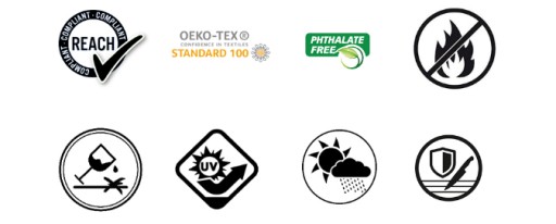 - матеріал відповідає регламенту REACH, має сертифікат STANDARD 100 by OEKO-TEX