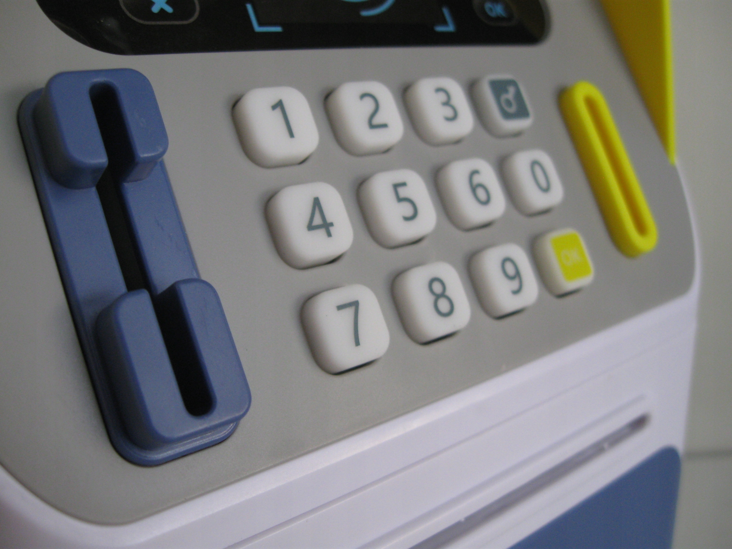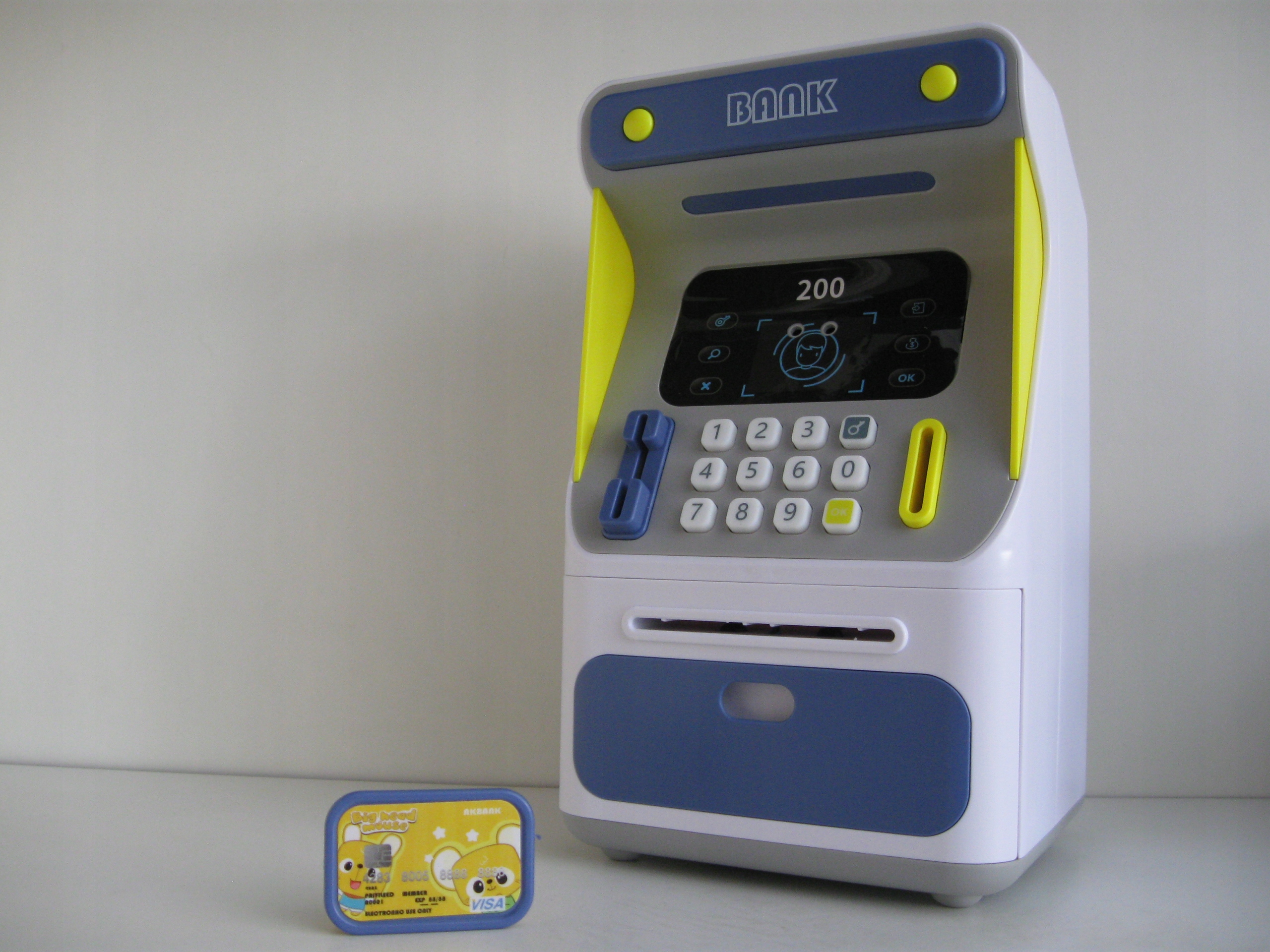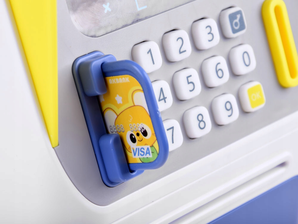 Bankomat skarbonka to świetna i rozbudowana zabawka dla dzieci. Pomoże liczyć bilon, posługiwać się kartą bankomatową, ustalać wpłaty i wypłaty, a także umożliwia wprowadzenie celu oszczędności. Będzie kontrolować wszelkie wypłaty lub można go wykorzystać podczas zabawy z rówieśnikami w sklep