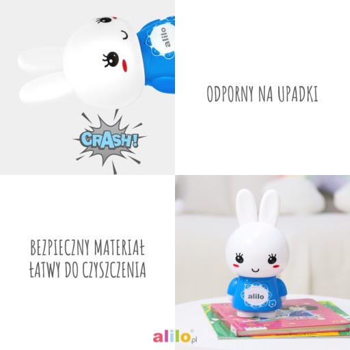 Big Bunny особливий тим, що його можна використовувати як комп'ютерну колонку! Він є найновішим представником родини кроликів. Крім того, м'які вуха, що світяться, і голова, що світиться, гарантують чудове задоволення. Крім того, ваша дитина може безпечно щипати та кусати ці м’які вушка. Можливо, він записує свій голос, розповідає історії та співає пісні двома мовами – польською та англійською, як і його сестри та брати – зайчики Honey Bunny. Крім того, він може запам'ятати улюблені пісні вашої дитини. Він дуже простий у використанні. Крім того, він дуже міцний, тому що виготовлений з ABS-пластику, який у 30 разів міцніший за звичайний пластик!