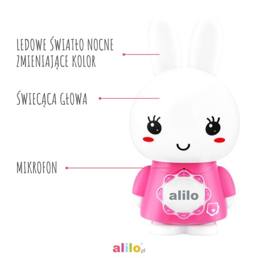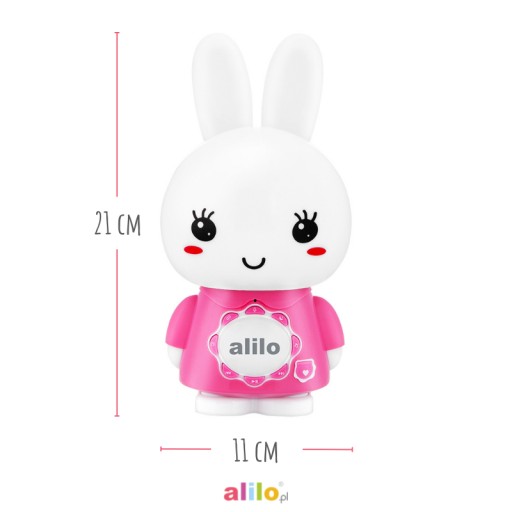 Big Bunny особливий тим, що його можна використовувати як комп'ютерну колонку! Він є найновішим представником родини кроликів. Крім того, м'які вуха, що світяться, і голова, що світиться, гарантують чудове задоволення. Крім того, ваша дитина може безпечно щипати та кусати ці м’які вушка. Можливо, він записує свій голос, розповідає історії та співає пісні двома мовами – польською та англійською, як і його сестри та брати – зайчики Honey Bunny. Крім того, він може запам'ятати улюблені пісні вашої дитини. Він дуже простий у використанні. Крім того, він дуже міцний, тому що виготовлений з ABS-пластику, який у 30 разів міцніший за звичайний пластик!