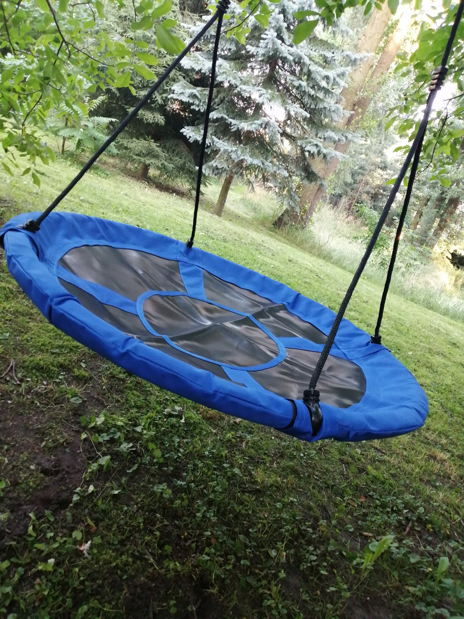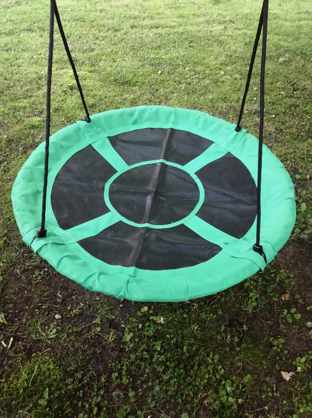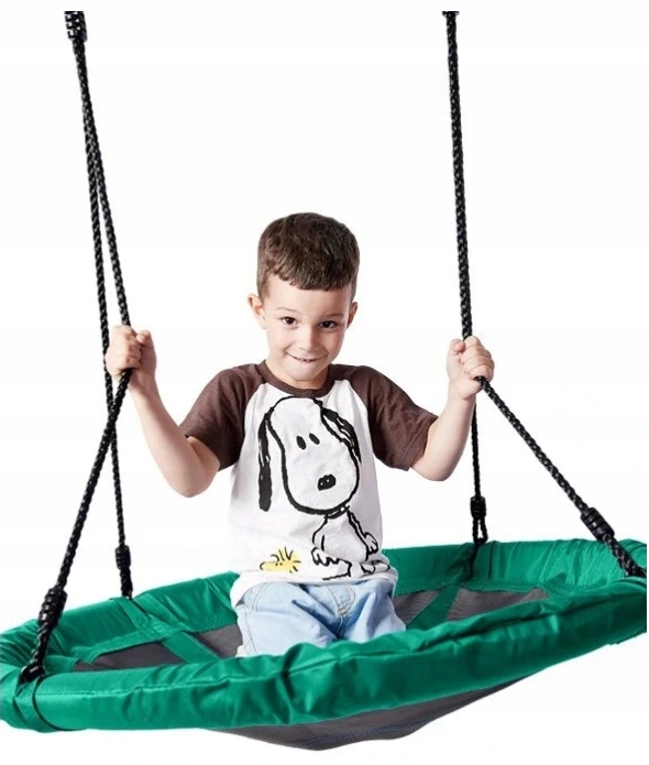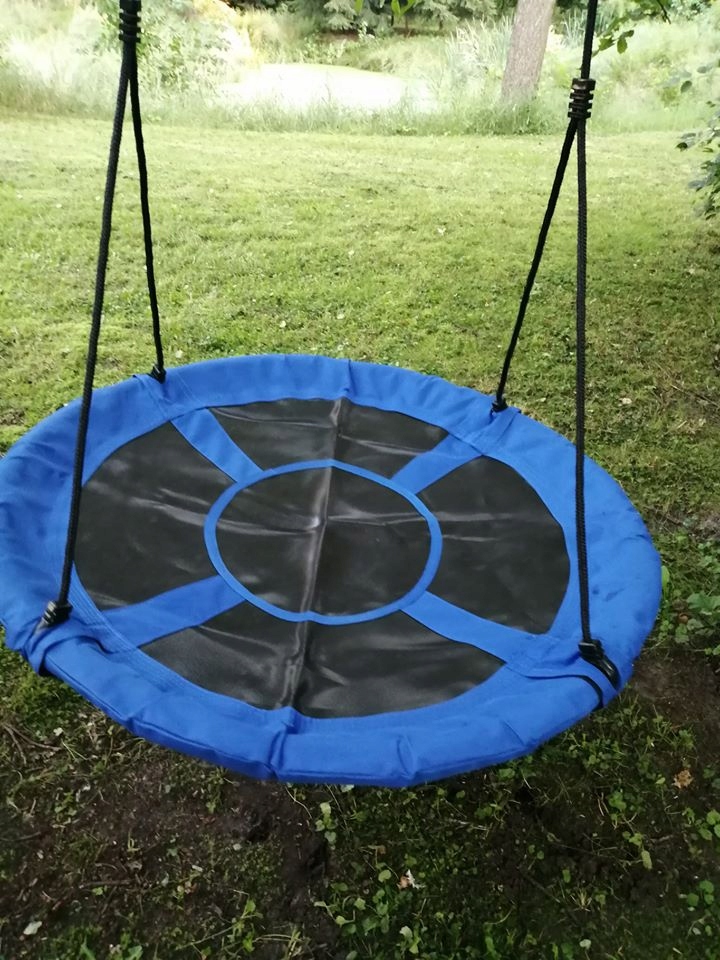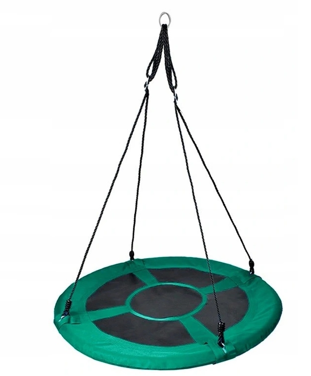 Udźwig do 150 kg możliwy jest dzięki zastosowaniu plecionych lin. Gwarantuje to bezpieczeństwo i pozwala na beztroskie chwile radości. Regulowane liny pozwalają dostosować wysokość, co sprawia, że okrągła huśtawka może być zamontowana w każdym przystosowanym do tego miejscu. Wisząca huśtawka może być tym samym dopasowana także do wzrostu najmłodszych użytkowników. Ułatwia to im bezpieczne wsiadanie i schodzenie. Liny wykonane są z polietylenu, a siedzisko z poliestru, co powoduje, że całość jest odporna na działanie czynników atmosferycznych. Dzięki temu huśtawka może być pozostawiona na zewnątrz nawet w czasie niesprzyjającej aury. Właściwości materiałów, z których została zrobiona huśtawka sprawiają także, że całość szybko wysycha.