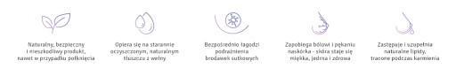 - Відновлює природні ліпіди, втрачені під час грудного вигодовування