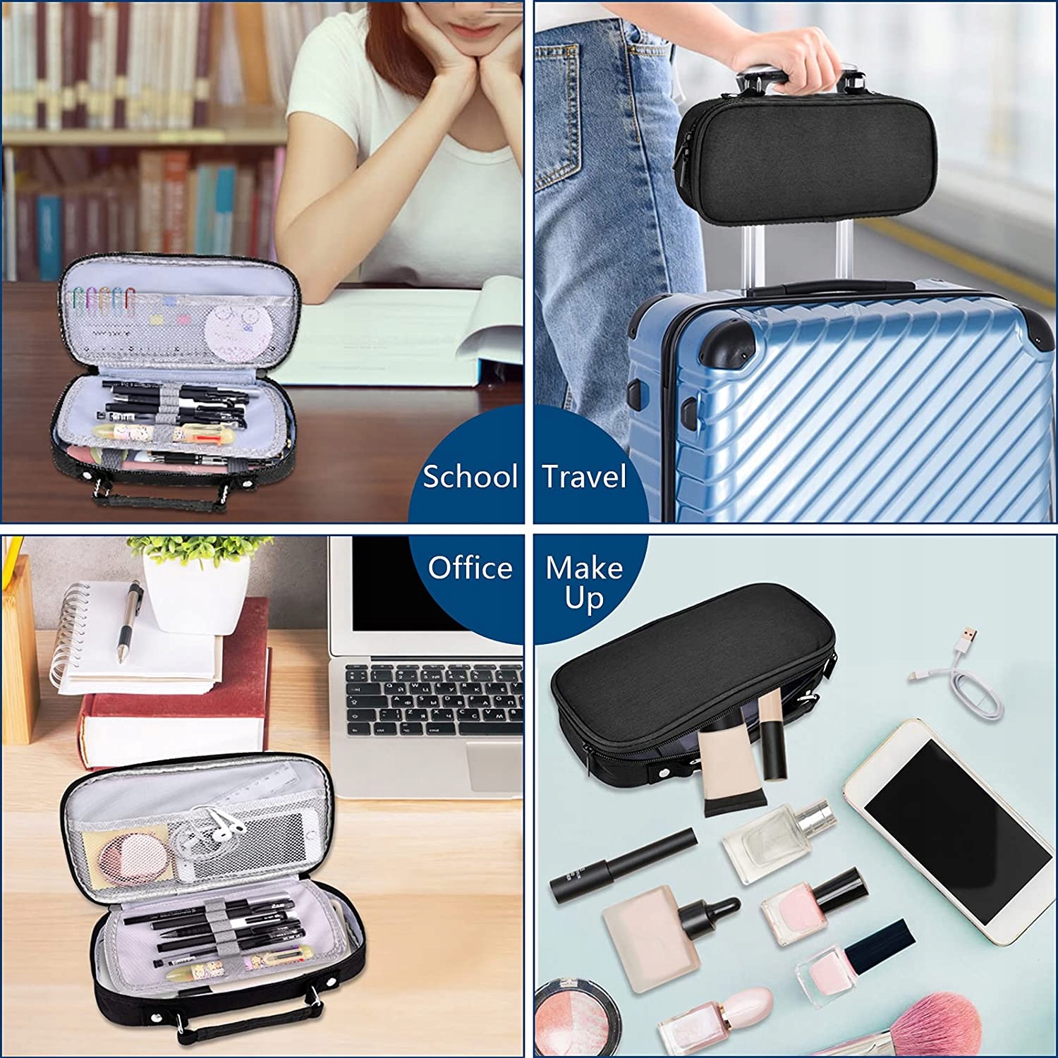 [Wielofunkcyjny]: Ta torba na długopis to wielofunkcyjna torba z różnymi przegródkami, która może być używana jako etui podróżne, kosmetyczka, etui na narzędzia, etui na telefon komórkowy i wiele innych, aby dopasować się do wszystkich podstawowych codziennych potrzeb. Nadaje się zarówno do biura, szkoły, domu i korzystanie z podróży.