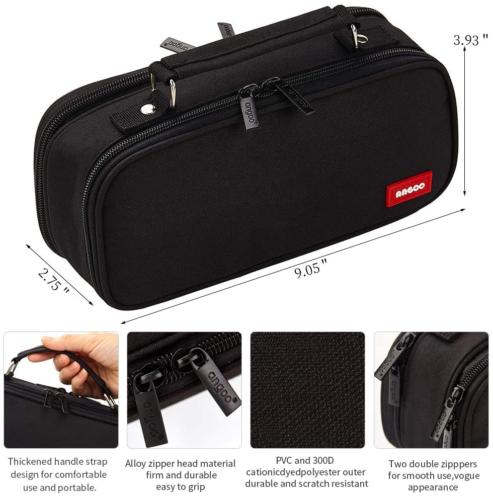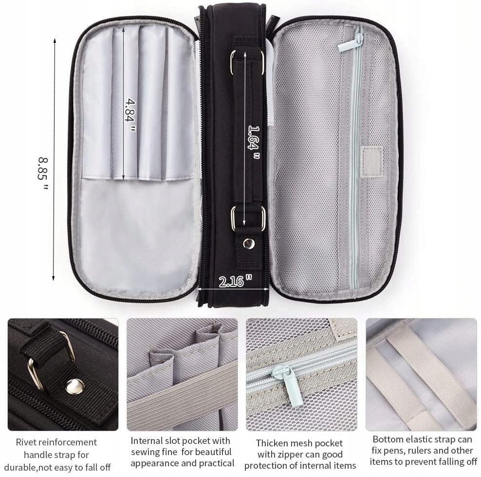 [Unikalna konstrukcja]: z paskiem na uchwyt wzmacniający nit, niełatwy do złamania; I pogrubiony pasek na uchwyt zapewniający wygodne użytkowanie i łatwy do przenoszenia. Dwa podwójne zamki błyskawiczne, bezpieczne dla wszystkich zorganizowanych rzeczy. Piórnik zawiera elastyczny pasek, który bezpiecznie trzyma ołówek lub przedmioty, aby zapobiec ich wypadnięciu.