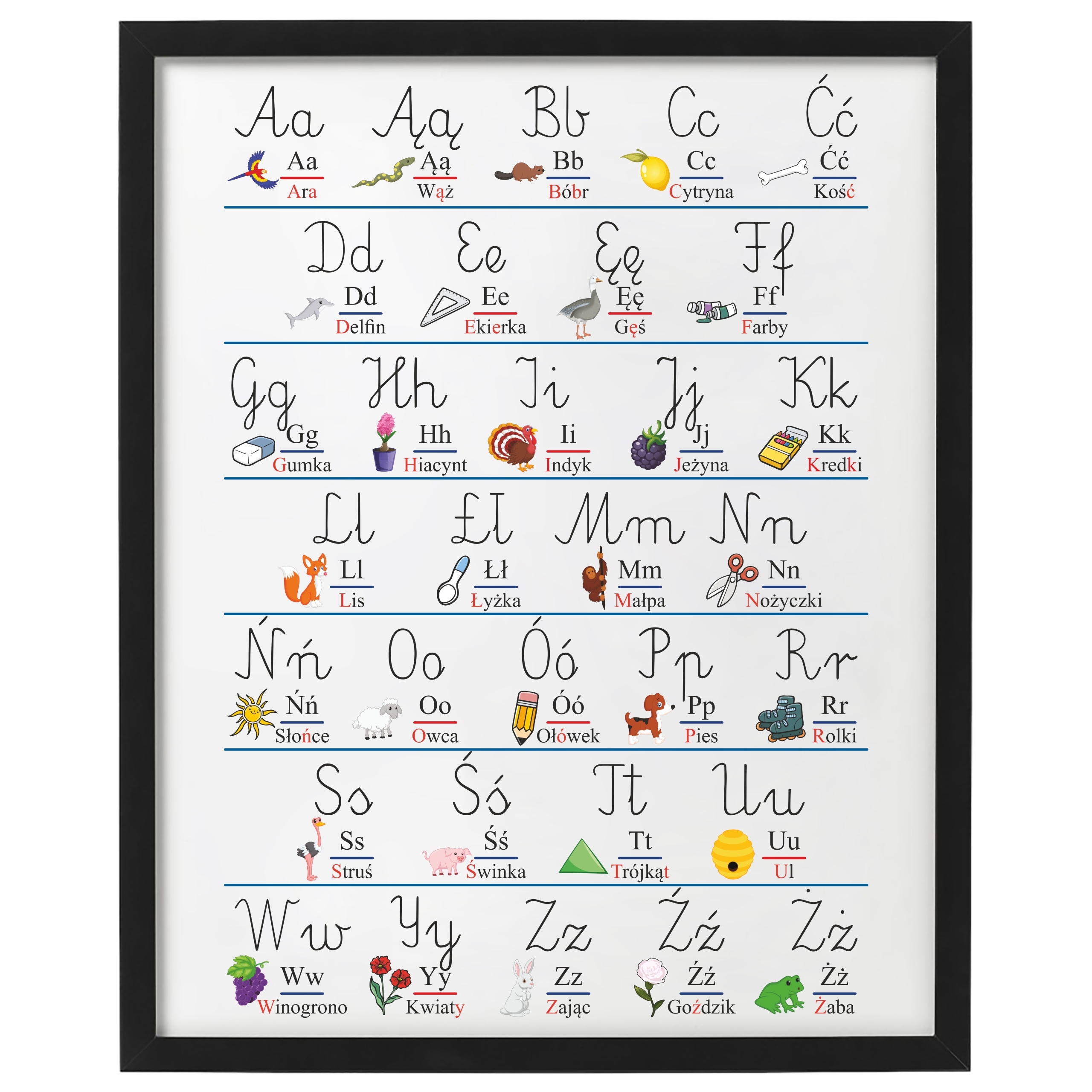 Plakat edukacyjny w ramce będzie idealną ozdobą do pokoju dziecięcego lub sali lekcyjnej.