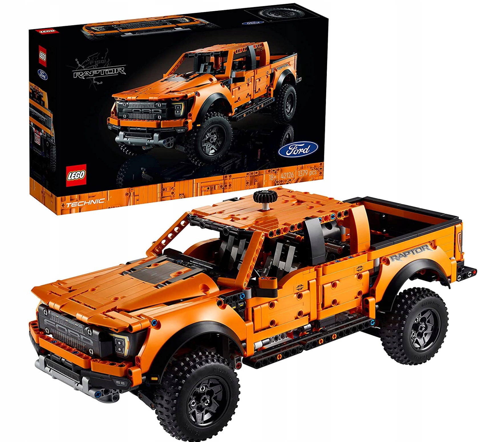 O Zbuduj model upamiętniający ciężko pracującego pickupa -- Forda(R) F-150 Raptor z zestawu LEGO(R) Technic (42126). o Ten fascynujący projekt konstrukcyjny LEGO(R) Technic jest idealny dla dorosłych, a gotowy model zachwyca bogactwem funkcji i detali. o Ten realistyczny model powstał z inspiracji prawdziwym pickupem Ford(R) F-150 Raptor -- ma silnik V6 z ruchomymi tłokami i zawieszenie wszystkich kół. o Zobacz realistyczne detale wnętrza, cztery pary otwieranych drzwi, podnoszoną maskę i platformę. o Owocem tego relaksującego projektu będzie kolekcjonerski model Forda(R) F-150 w wersji LEGO(R) Technic -- w sam raz do postawienia na półce. o Model ma ok. 15 cm wysokości, 42 cm długości i 18 cm szerokości. o Chcesz podarować coś wyjątkowego fanowi Fordów(R) serii F? Ten zestaw będzie idealnym prezentem dla każdego wielbiciela pickupów i innych fajnych pojazdów oraz modeli kolekcjonerskich. o W świecie zestawów LEGO(R) Technic zaawansowane modele konstrukcyjne czekają na fanów budowania z LEGO, którzy są gotowi na kolejne wyzwania. o Elementy LEGO(R) Technic spełniają rygorystyczne standardy branżowe, dzięki czemu są jednolite, zawsze do siebie pasują i można je z łatwością połączyć oraz rozdzielić -- i tak jest niezmiennie od 1958 roku.