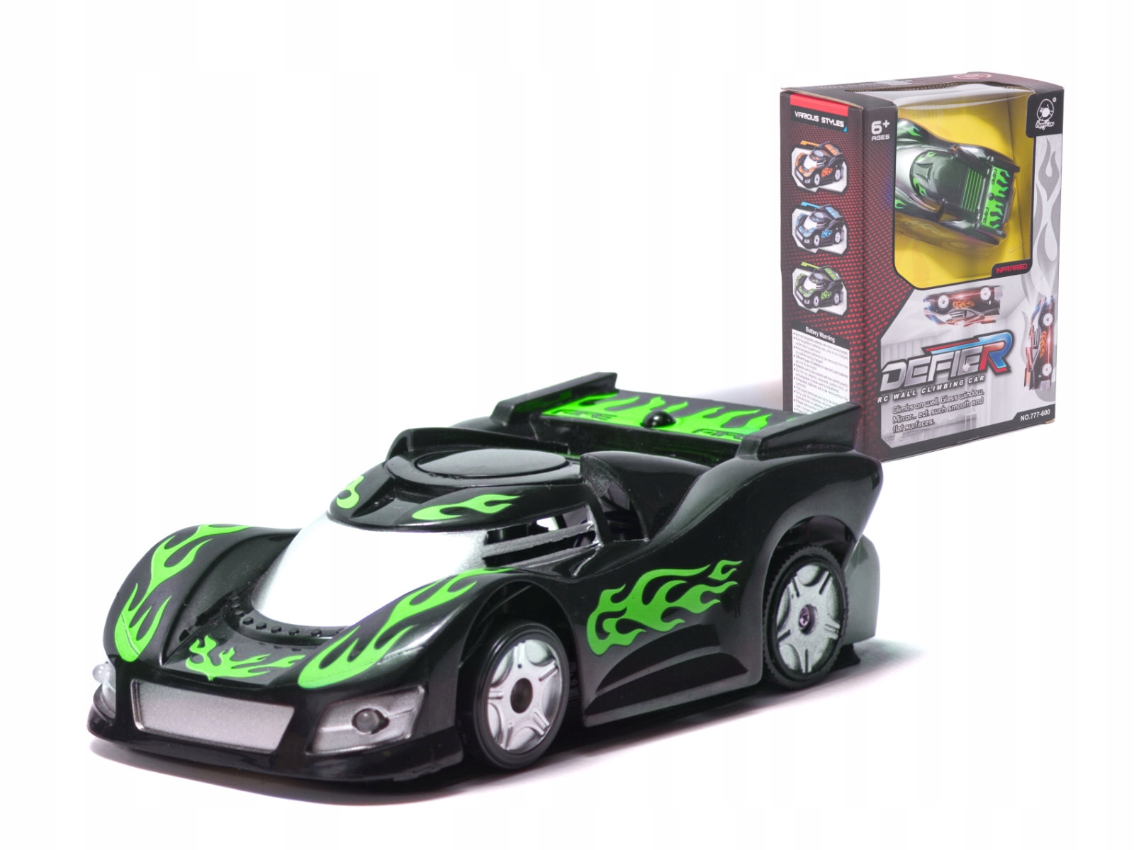 Samochód RC jeździ po ścianie suficie na pilota zielony