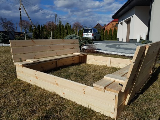 ✅ Пісочниця виготовлена з сосни найкращої якості, складається з двох закритих лав.