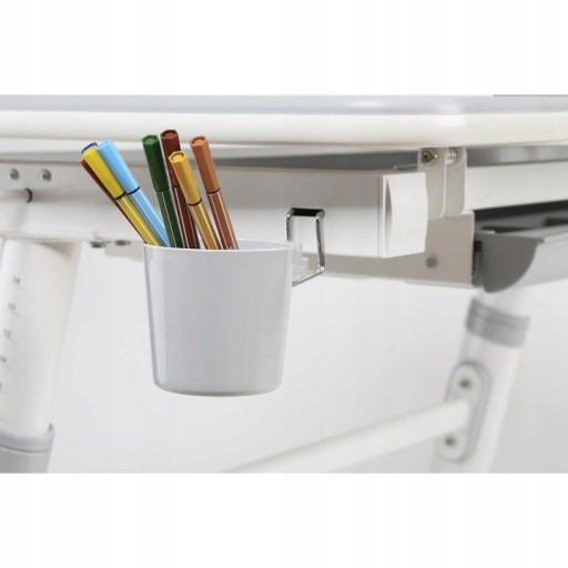 Практична висувна шухляда ідеально підходить для зберігання шкільного приладдя, наприклад ручок, кольорових олівців, паперу чи зошитів.