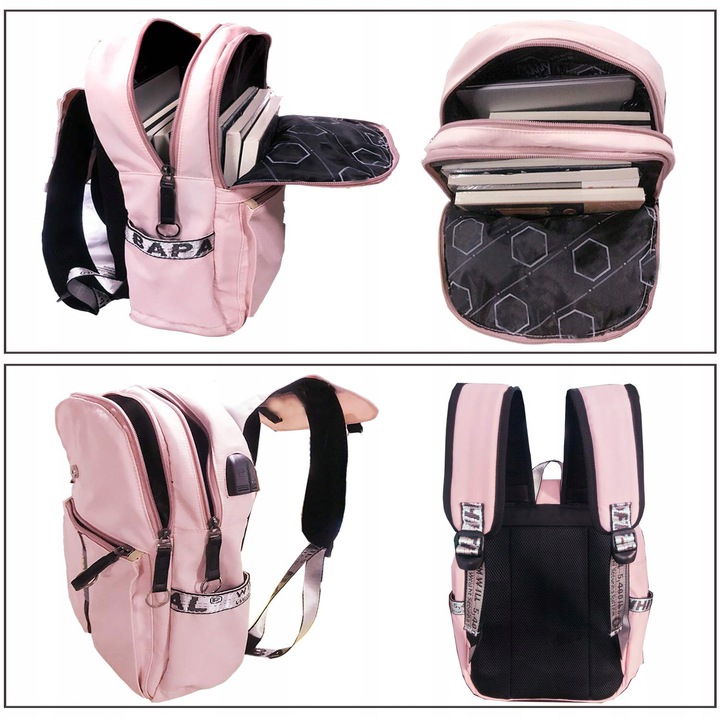 Port USB i gniazdo słuchawkowe, zewnętrzny port USB i słuchawkowy. Plecak dziewczynki zapewnia wygodniejszy sposób chodzenia w celu naładowania telefonu. Należy pamiętać, że plecak nie będzie zasilany automatycznie, a port ładowania USB służy jedynie do ułatwienia ładowania.