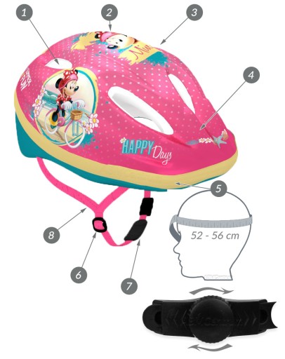 - Плавно регулюється окружність голови від 52 до 56 см.