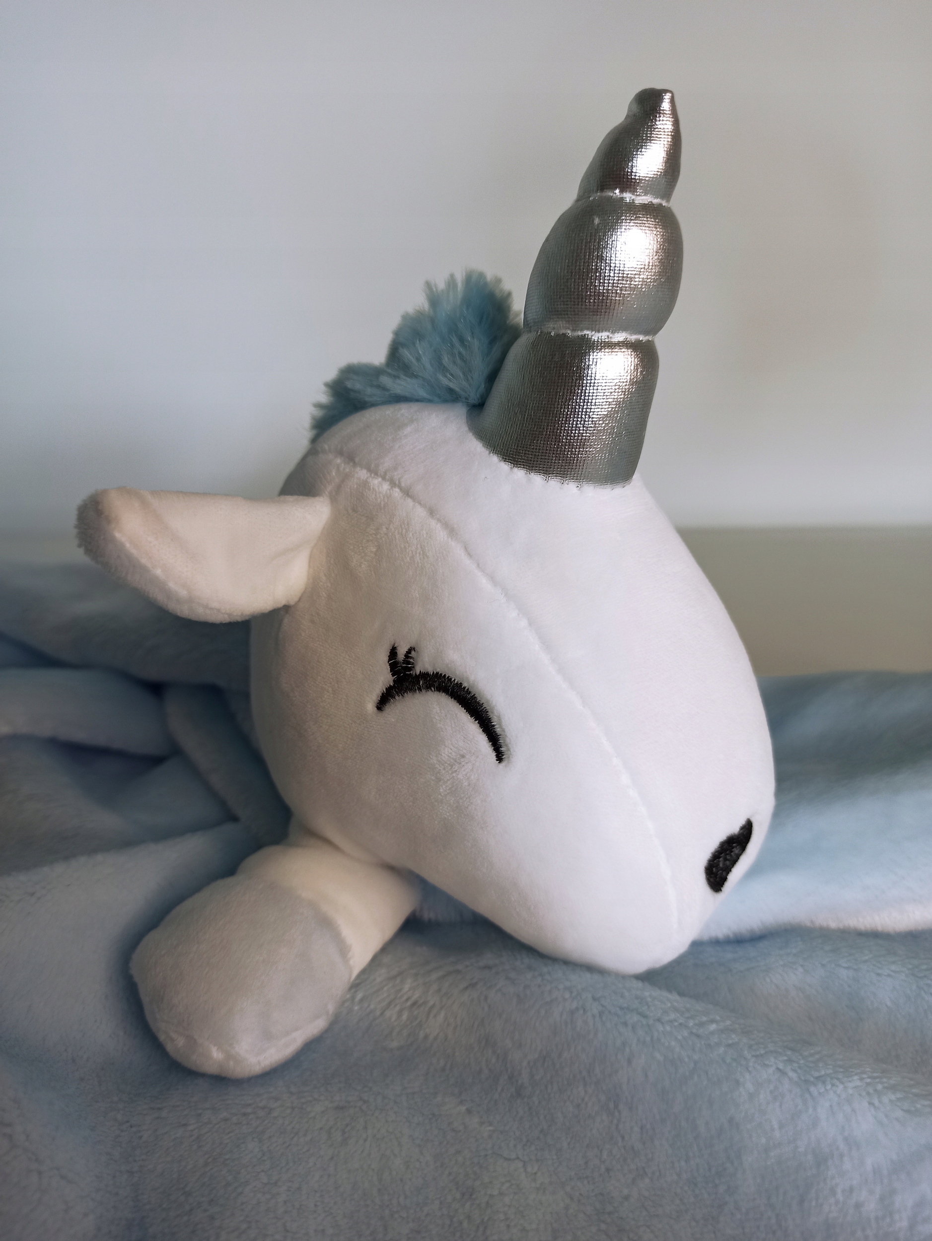 Mięciutki kocyk z maskotką jednorożcem w ozdobnym pudełku.
