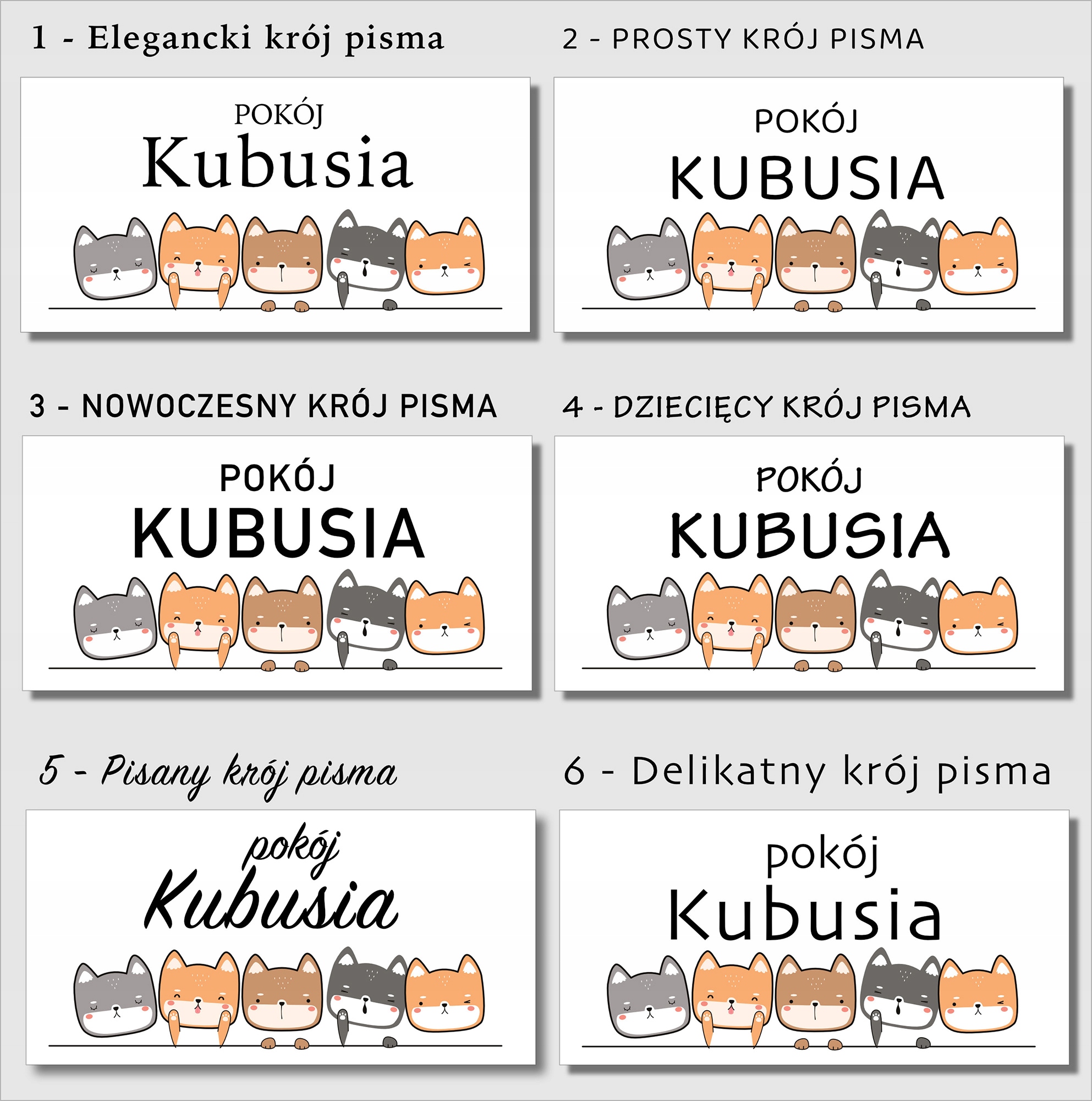 Prosimy o podawanie numeru kroju pisma oraz imienia dziecka w uwagach przy zamówieniu.