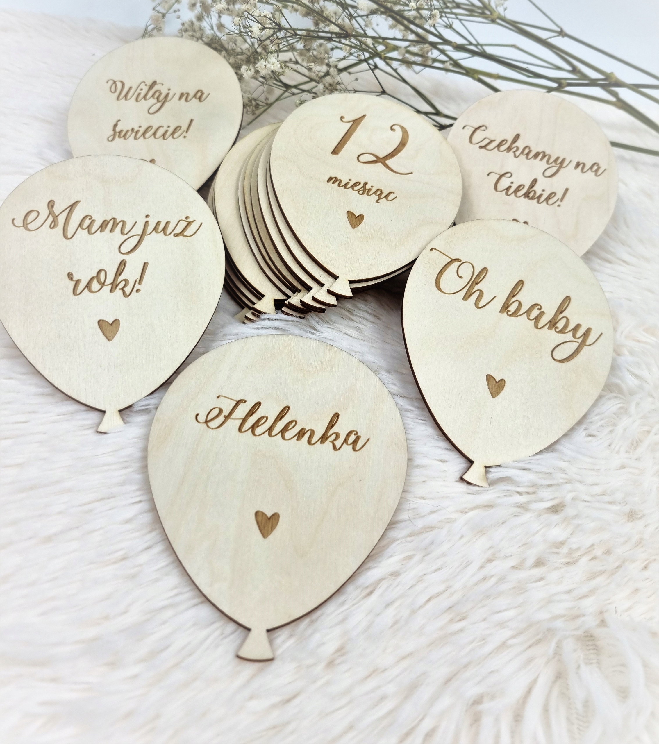 Wyjątkowe personalizowane tabliczki w kształcie Balonika z dedykowanym grawerem. Są doskonałym sposobem aby uwiecznić pierwsze 12 miesięcy swojego maluszka.