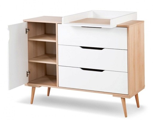 Комод SOFIE - це поєднання сучасного дизайну та функціональності. Поєднання білого і букового відтінку радує око навіть найвибагливіших людей. Полиці, що замикаються, і три містких ящика стануть підмогою для багатьох новоспечених мам. Комод SOFIE також сумісний із пеленальним майданчиком, який може виявитися безцінним на ранніх етапах життя дитини.