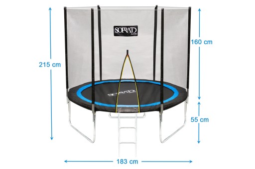 - Суцільна драбинаполегшує безпечний підйом на батут.