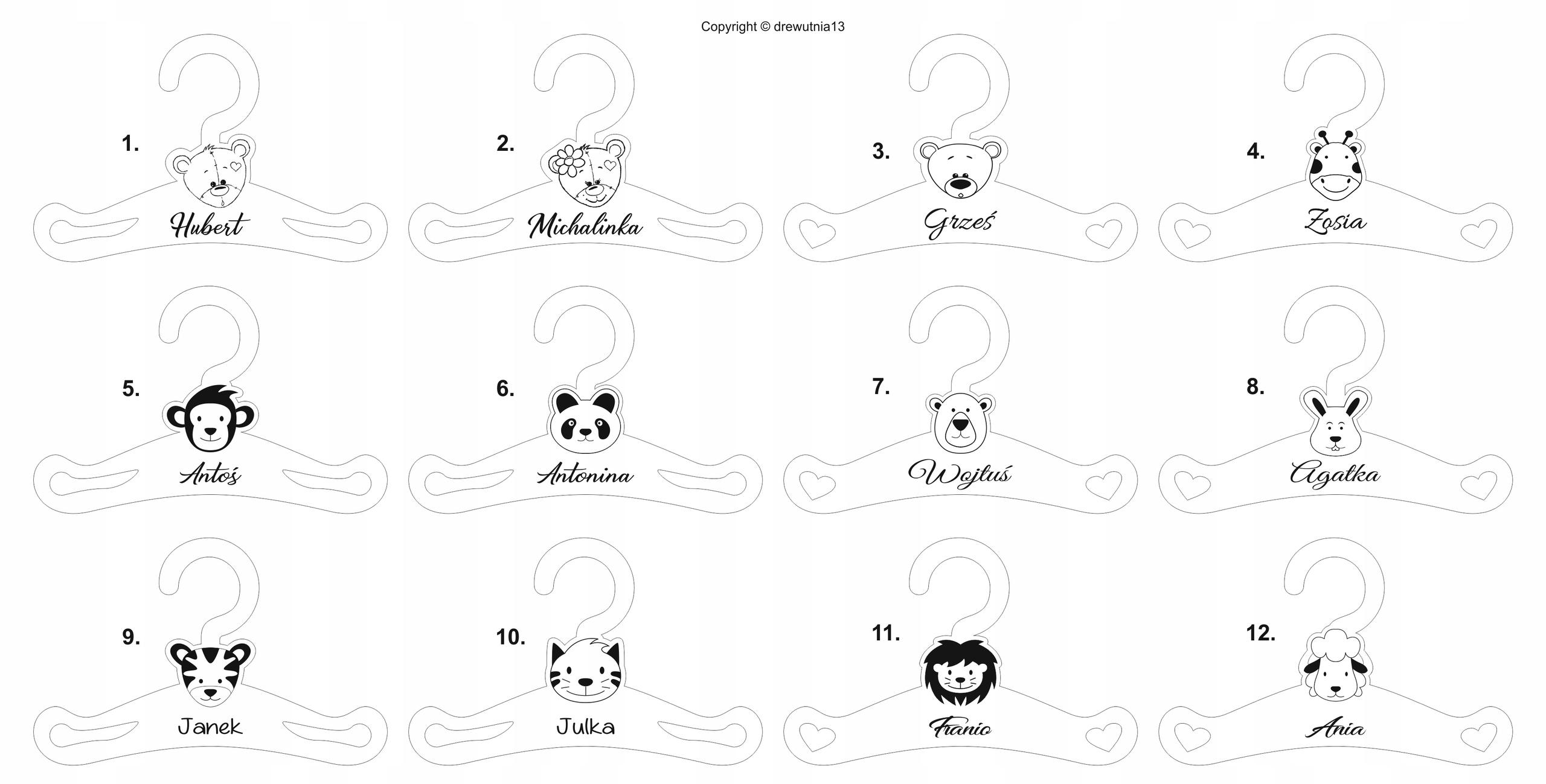 Przykładowo: imię WIKTORIA; wybieram wzór wieszaka nr 2; czcionka ze wzoru nr 8.