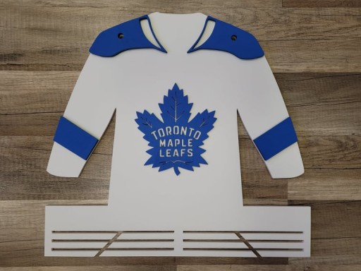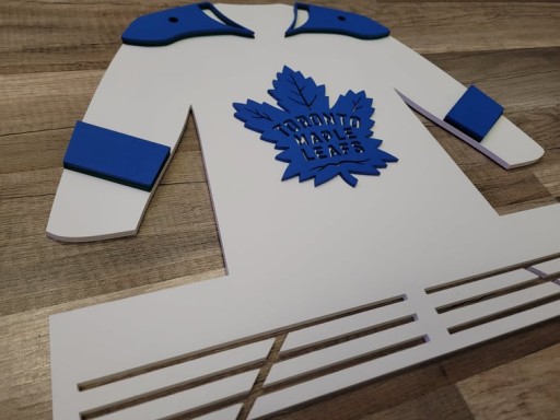Дерев'яний органайзер і вішалка для медалей у формі хокейної форми, натхненна клубами НХЛ.