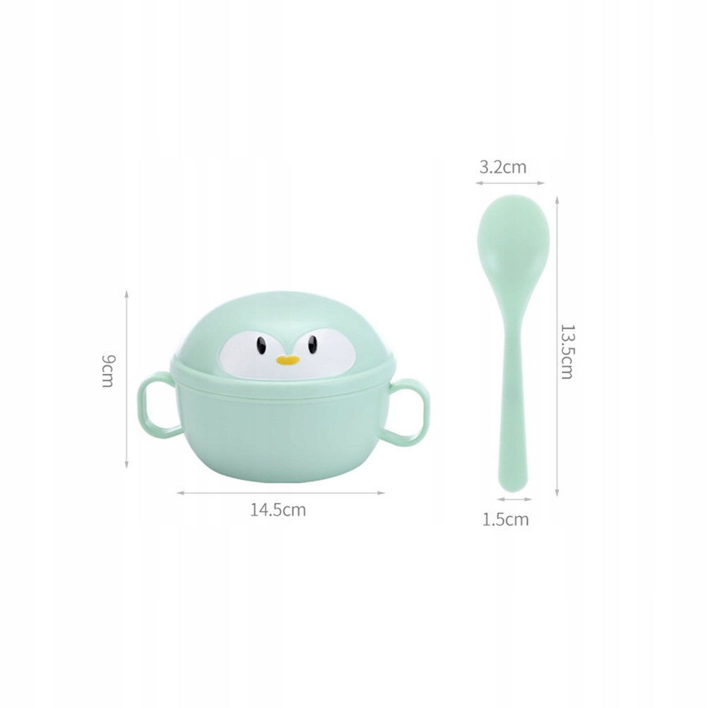 -Ma konstrukcję w kształcie pingwina, uroczą i kreatywną, która zwiększy apetyt Twojego dziecka.