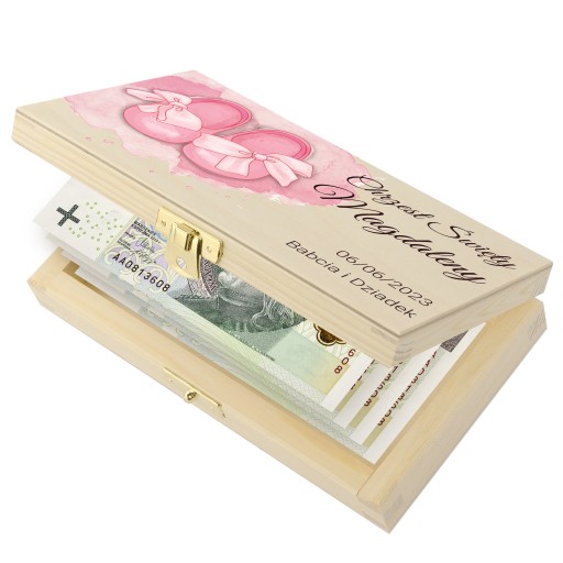 Розмір коробки ідеально відповідає розміру банкнот. Висота 3,5 см дозволить розмістити велику суму готівки, а в довжину і ширину легко поміститься банкнота номіналом 500 злотих.