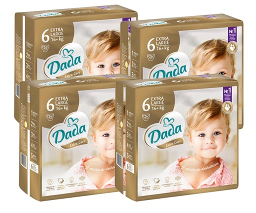 Нові покращені підгузки від відомого бренду DADA, улюбленого батьками, серії EXTRA CARE, версія 6 EXTRA LARGE, підходять для дітей вагою понад 16 кг.