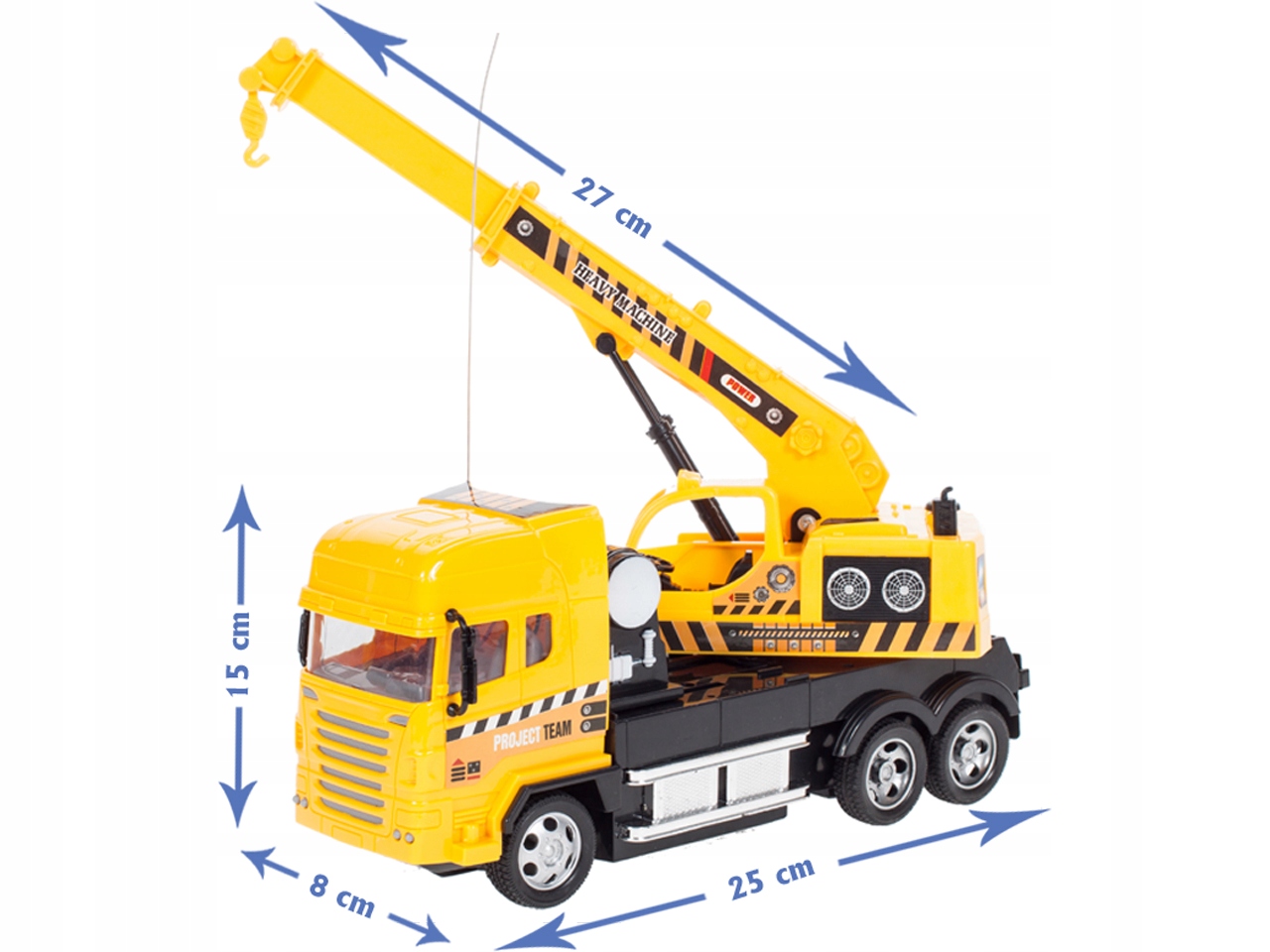 Time for great fun with construction machines. A global hit now available in Poland. Crane remotely controlled 4 channels. Great fun not only for children. Front wheel toe-in adjustment (switch between wheels).