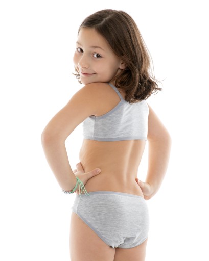 Спортивний топ для дівчинки на тонких бретелях і трусики для молодої жінки-підлітка. Вони виготовлені з приємної на дотик еластичної тканини. Топ ідеально підходить для занять як ніжний бюстгальтер для маленьких жінок, дуже добре облягає тіло. Інжир не перетискається, має ніжну гумку.