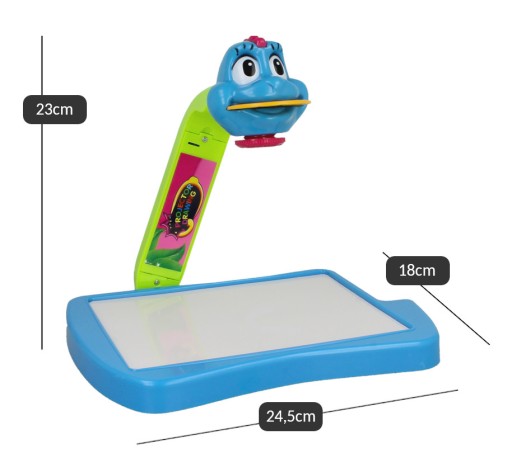 Щоб запустити проектор, просто вставте слайд-диск у проектор, натисніть кнопку у верхній частині проектора, і готово! Проектор відобразить на білому аркуші паперу або вбудованій дошці картинку, яку зможе відтворити маленький художник!
