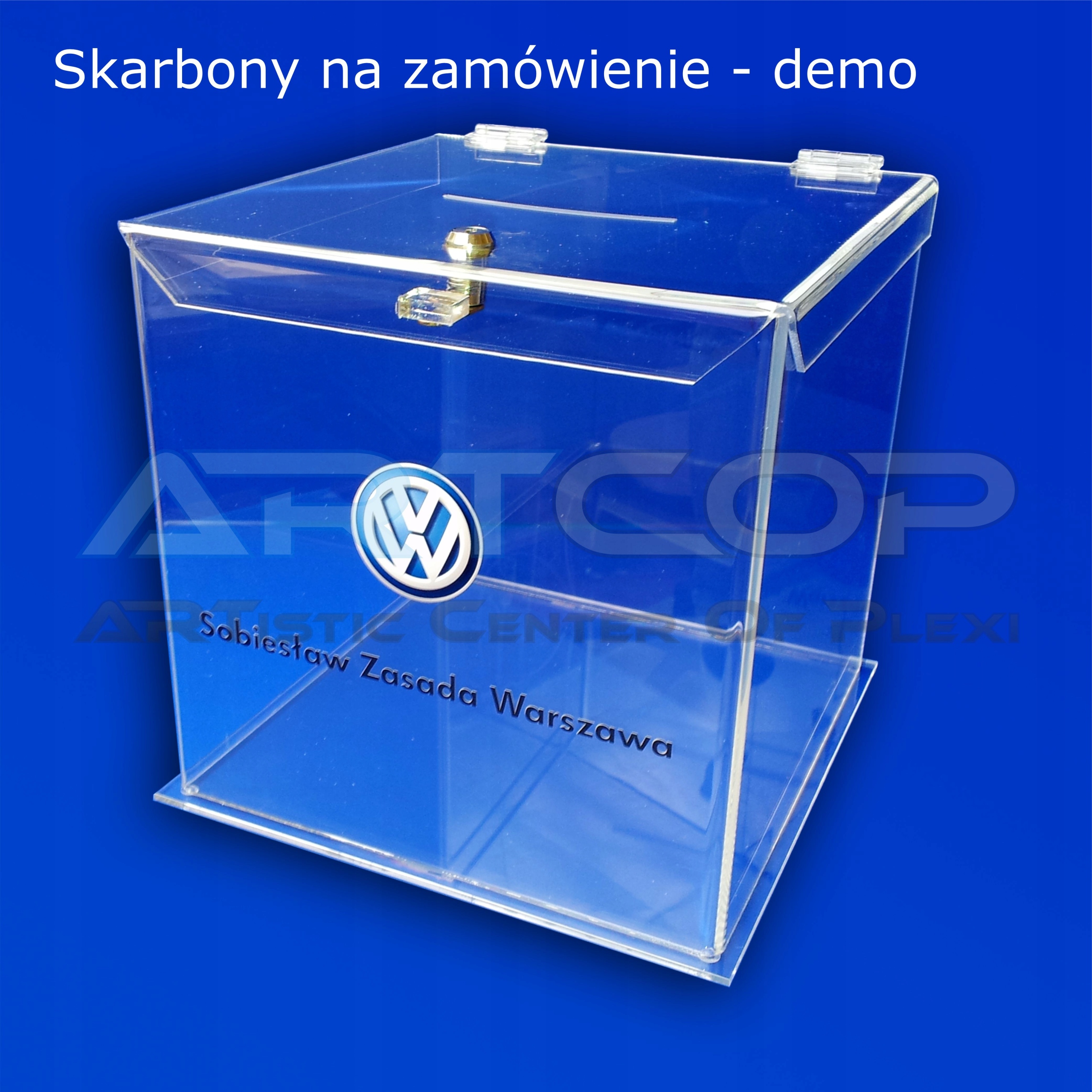 Skarbona przezroczysta, Urna z plexi (wieko wygięte, wzmocnione) 30cm x 30cm x 30cm.