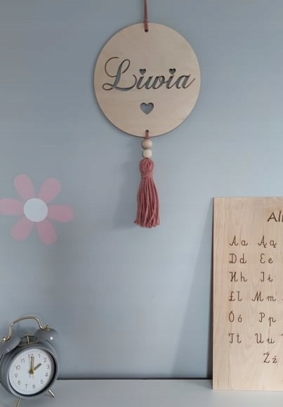 Kółko ma średnicę 20 cm wykonane zostało ze sklejki o grubości 3mm.