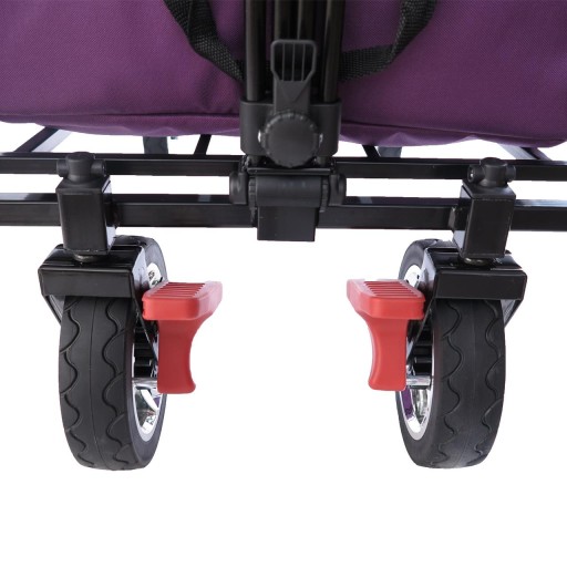 - Великі широкі поворотні колеса, оснащені гальмами, що забезпечують стійкість на будь-якій поверхні.