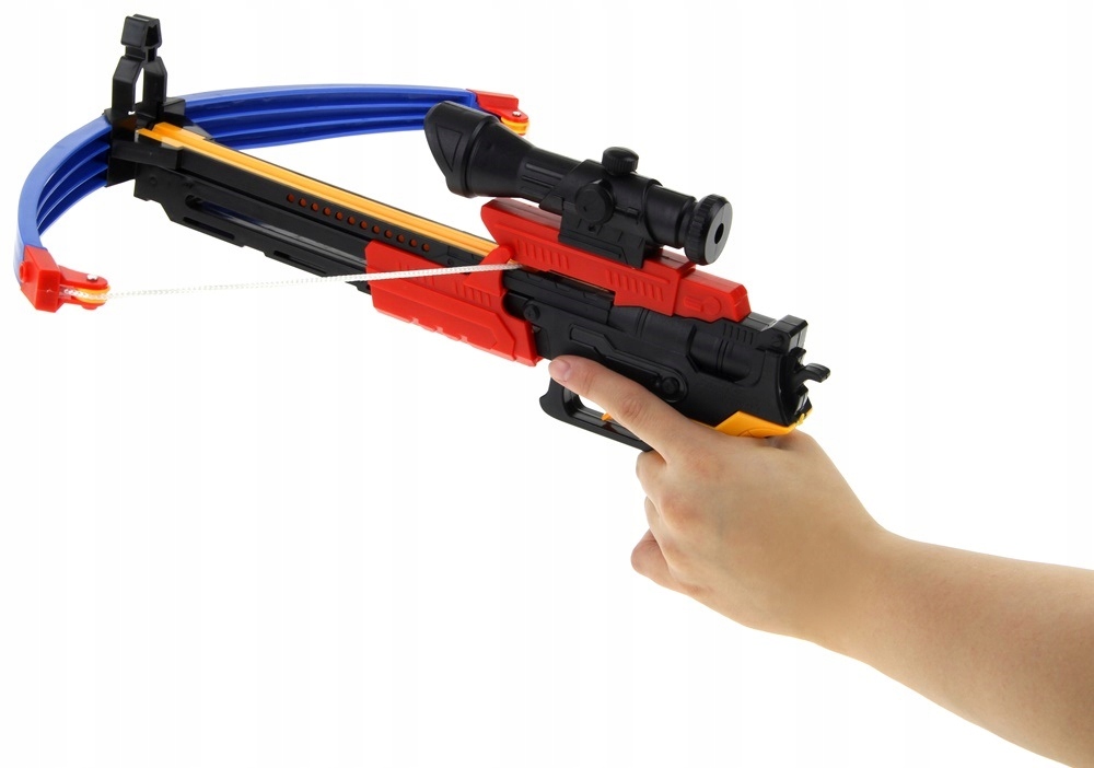 The crossbow will provide your child with fantastic fun at home and outdoors. The toy has an easy-to-use mechanism that tightens the string. After putting the arrow in the right place and aiming, just pull the trigger. Each of the arrows ends with a rubber suction cup, thanks to which the fun will be completely safe. The shield will enrich the competition in obtaining the best possible score.