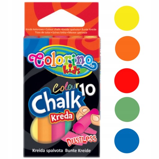 â10 крейди таких кольорів:жовтий, оранжевий, червоний, зелений, синій