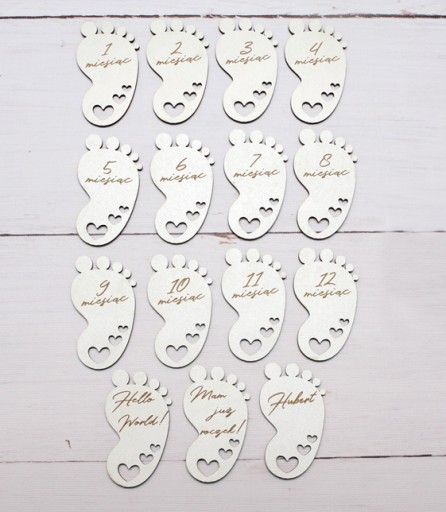 У наборі 15 штуктаблички: одна з ім'ям, інші з місяцями життя малюкаплюс ще 2 з вільним текстом: