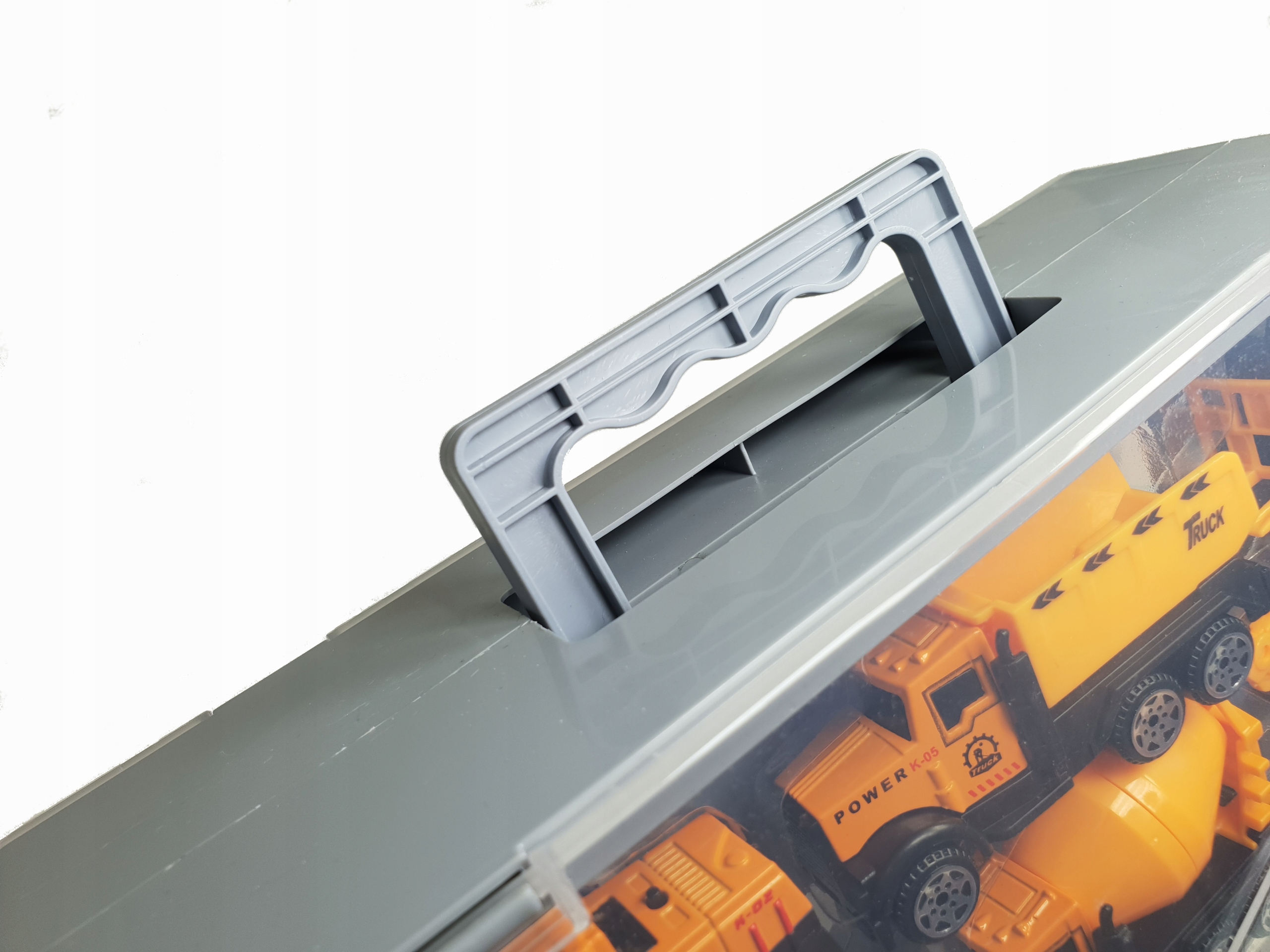 Zestaw posiada formę kompaktowego organizera z wysówanym, wygodnym uchwytem, dzięki której maluch może zabrać zabawkę do przedszkola, czy na wycieczkę. Przez przezroczyste ścianki, widać wszystkie pojazdy znajdujące się w środku. Ponadto jest niezwykle lekka – nie będzie ciążyła dziecku.