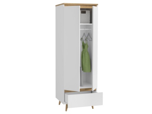Система Norge – це простота та елегантність, використання арктичного білого та теплого крафтового дуба, що є ідеальним поєднанням. Меблі з цієї колекції встановлені на ніжках з натурального бука, просочених маслом.