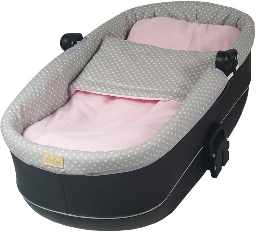 Комплект дитячої коляски гондола виготовлений із сертифікованої 100% бавовни, тканини Мінкі та наповнений силіконом. Внутрішній наповнювач вшитий у зовнішню тканину, тому не зміщується під час використання та прання.