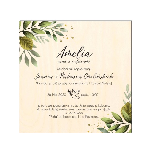 Дерев'яне запрошення з оригінальним принтом - ідеальне поєднання, щоб зробити ваше запрошення унікальним. Точність CO2-лазерного різання разом з інноваційним ультрафіолетовим друком роблять наш продукт найвищою якістю.