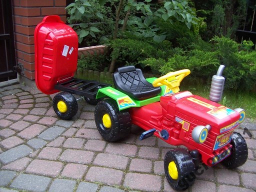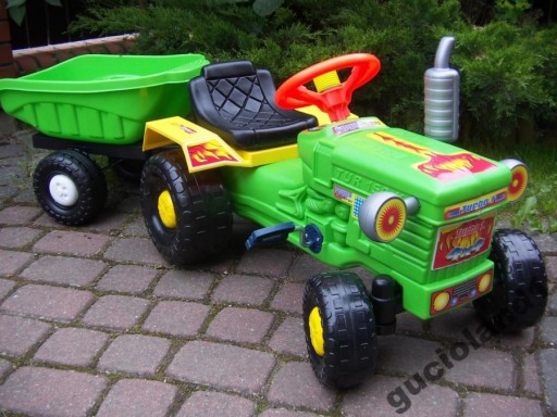 У ТРАКТОРА Є ПЕДАЛЬНИЙ ПРИВІД(З ЛАНЦЮГОВИМ МЕХАНІЗМОМ) ТА РУЛЬМО, З ЯКИМ ДИТИНА КЕРУЄ ВЕСЬ КОМПЛЕКТ!!!!