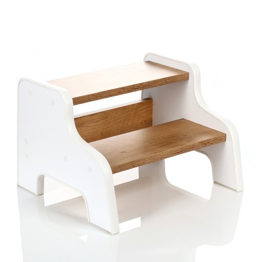 Наші сходи - це міцний продукт, який повністю виготовлений у Польщі. Ми виготовили їх з ЛДСП, тому вони не важать багато і дитина може самостійно переміщати їх по підлозі. Ми покрили все це м’яким ПВХ, щоб жоден гострий край чи стирчить заноза не загрожували малюкові. Всі шурупи закриті самоклеючими ковпачками, що входять в комплект. Знизу вони підбиті м’яким фетром, тому вам не доведеться турбуватися про подряпані підлоги!