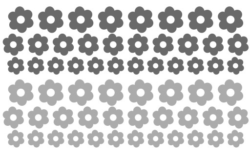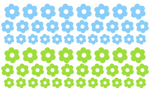 на аркуші 30 штук квітів, з них 12 штук діаметром 2 см, 10 штук діаметром 2,5 см і 8 штук діаметром 3 см.