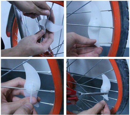 Накладка має спеціальні канавки, які використовуються для її кріплення на спицях велосипеда.