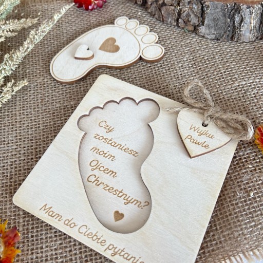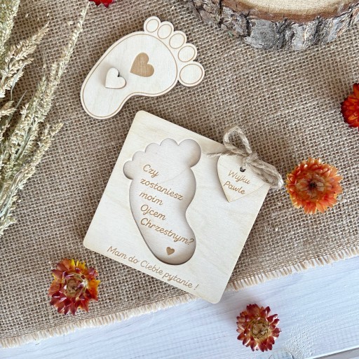 Дерев'яна листівка із запитанням: Ти будеш моїм хрещеним батьком?