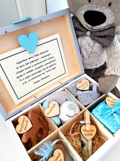 Гаджети, зображені на фотографіях у відділеннях (наприклад, шкарпетки, свічки, соски, гроші тощо) не продаються, це лише приклад вмісту відділення. Плюшевий ведмедик на задньому плані на фотографіях також не є пропозицією до продажу - це лише елемент декору фото.