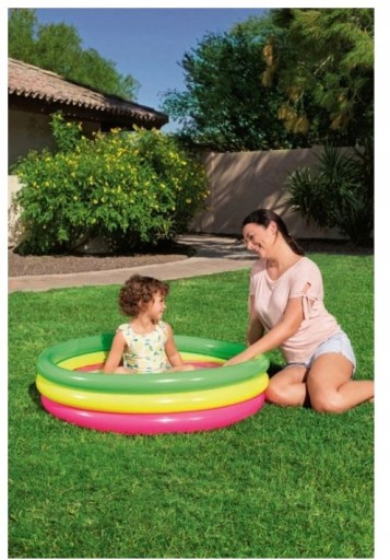 - СПЕЦИФІКАЦІЯ -матеріал: вініл; колір: багатобарвний; максимальне навантаження: 60 кг; місткість: 62 л; форма: кругла; тип: надувний; вік: 2+; розміри (п/в): 102/25 см; вага в упаковці: 0,55 кг