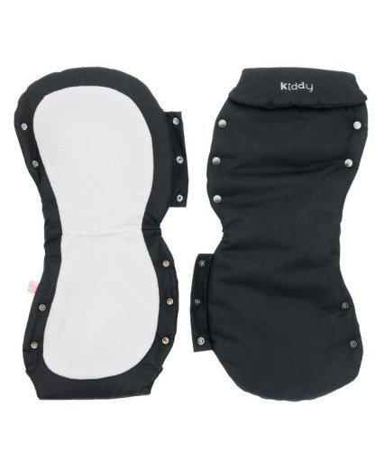 Універсальні муфти для коляски. Kiddy Handmuffs характеризується високоякісним матеріалом. Зовнішній шар ефективно ізолює від холоду та вітру, а внутрішній шар підбитий теплим флісом, який зігріває та захищає руки від замерзання. Манжети кріпляться на повну ручку коляски за допомогою фіксаторів. Виріб можна прати при 30 градусах.