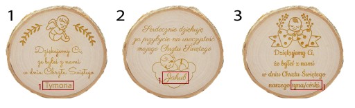 При покупці додаткової послуги гравірування (доступна на інших наших аукціонах) ми можемо замінити текст із малюнка на текст, наданий покупцем. Тоді слід пам’ятати, що кількість символів, які надсилає клієнт, має відповідати кількості символів тексту з формули.