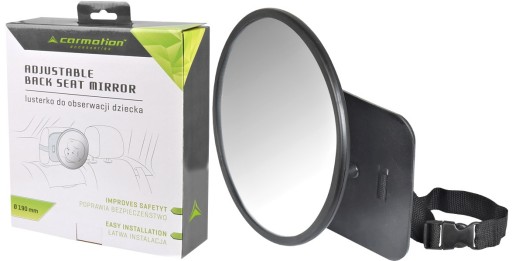 Дзеркало, призначене для спостереження за дитиною, яка перевозиться на задньому сидінні в автокріслі, розташованому проти руху. Він стійкий, коли прикріплений до заднього підголівника. Регульована. Виготовлений повністю з пластику.